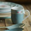 - This blue fine porcelain mug is decorated all around with a small print, pink flowers and golden details. Combines beautifully with the other porcelain sets in the Blushing Birds collection.