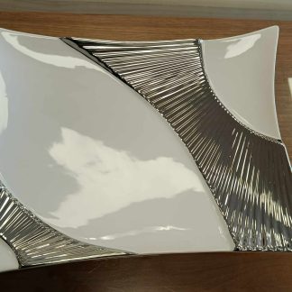 Made out of ceramic and has a silver colour.