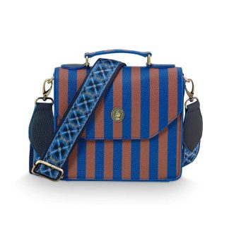 - Step out in style with this blue striped shoulder bag. This brand-new model is the smaller version of the Frances Shoulder Bag Medium. Even in this smaller size, there’s enough room for the striped Willow wallet, making it the perfect match for this bag. The shoulder bag features a striped design in blue and taupe tones and an adjustable strap with an embroidered floral pattern. With two compartments inside, this bag is not only beautiful but also practical! The dimensions of the bag are: 19 x 7 x 17.5 cm.