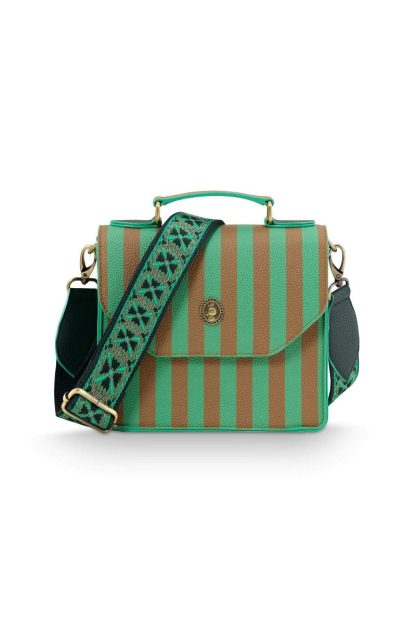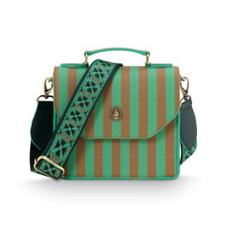 - Step out in style with this green striped shoulder bag. This brand-new model is the smaller version of the Frances Shoulder Bag Medium. Even in this smaller size, there’s enough room for the striped Willow wallet, making it the perfect match for this bag. The shoulder bag features a striped design in green and taupe tones and an adjustable strap with an embroidered floral pattern. With two compartments inside, this bag is not only beautiful but also practical! The dimensions of the bag are: 19 x 7 x 17.5 cm